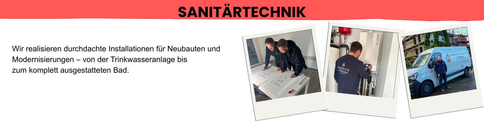 Neben der Installation kümmern wir uns auch um Reparaturen und die Wartung von Leitungen und Armaturen, beheben Leckagen, Rohrprobleme oder Ablagerungen frühzeitig und sorgen dafür, dass Ihre Sanitäranlagen langfristig zuverlässig arbeiten. Wir legen großen Wert auf Sorgfalt, Qualität und Langlebigkeit, damit Sie sich um die Technik keine Sorgen machen müssen.